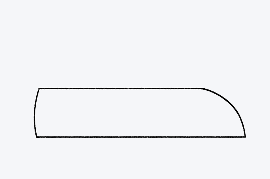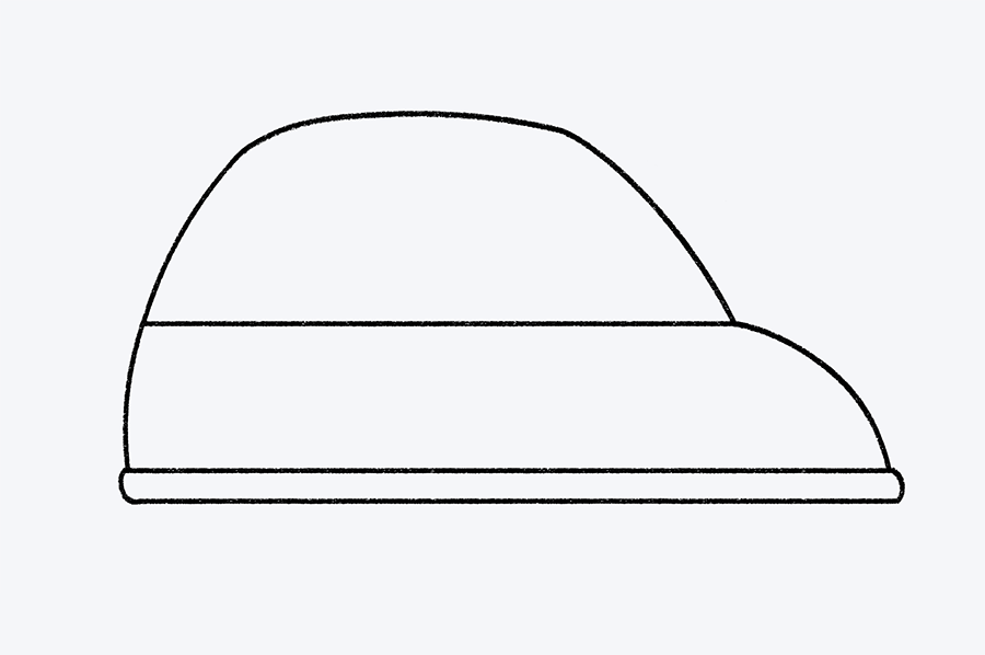Ahora vamos a darle forma al auto. Desde cada extremo de la línea base que hiciste en el paso anterior, dibuja una curva que suba suavemente. Luego, une esas dos curvas con una línea horizontal en la parte superior.