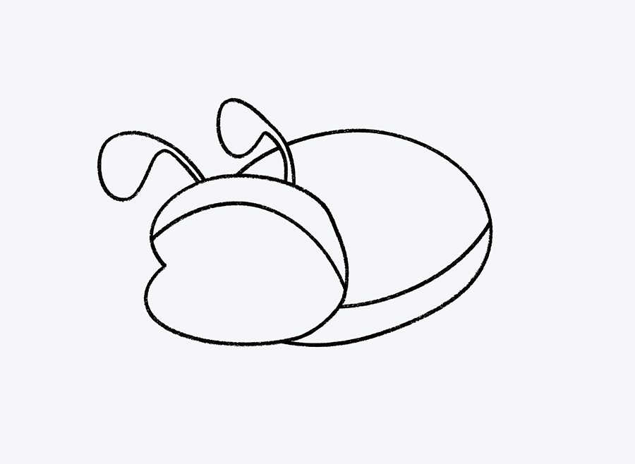Ahora añade la cabeza. Dibuja un segundo óvalo, más pequeño y en posición horizontal, pegado al lado izquierdo del cuerpo que trazaste en el paso anterior. Esta será la cabecita de la mariquita.