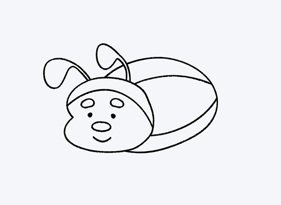 Para terminar este paso, dibuja una gran curva en la parte inferior del cuerpo. Esta línea te ayudará a dividir el cuerpo de la mariquita y será muy útil cuando dibujes las alitas y las patitas más adelante.