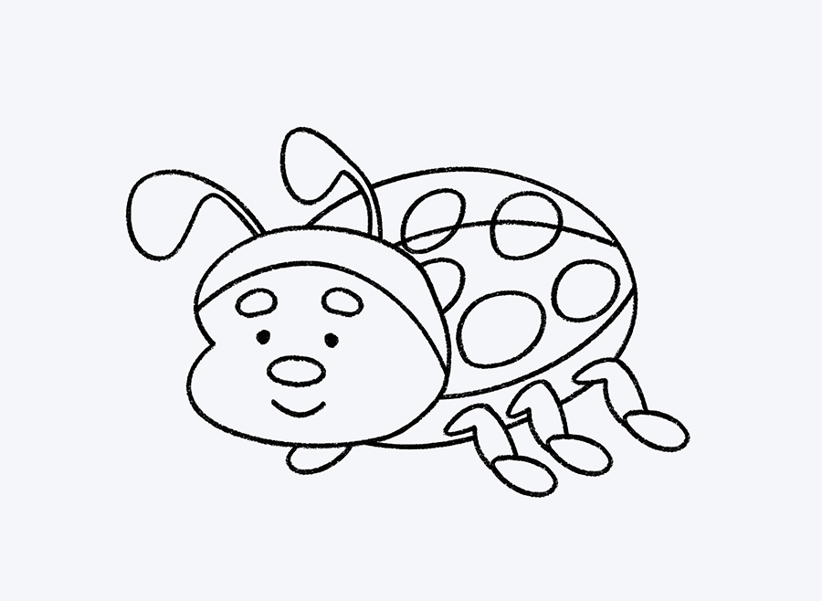 Llegó el momento de darle los toques finales a tu mariquita. Con mucho cuidado, borra las líneas internas que ya no son necesarias, como los trazos de las patitas que quedaron ocultos por el cuerpo. Solo deben quedar visibles las partes finales de las patas, esas que sobresalen y le dan movimiento al insecto.