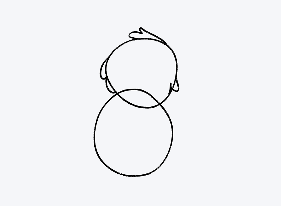 Ahora vamos a dibujar la cabecita del pingüino. Haz un círculo justo encima del óvalo que hiciste en el paso anterior. Este nuevo círculo debe ser más pequeño que el cuerpo y con una forma más redondeada.
