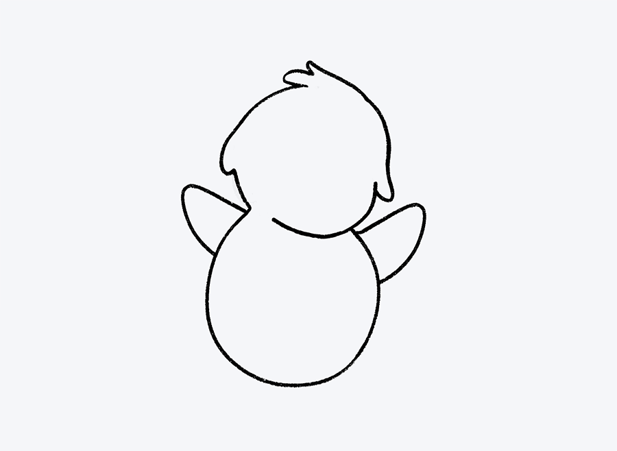 Ahora vamos a darle un toque especial a nuestro pingüino dibujando algunos mechones y plumas sobre su cabeza. Para eso, traza formas parecidas a gotitas alargadas que sobresalgan del contorno del círculo que hiciste en el paso anterior.