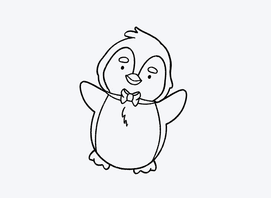 Como último detalle, dibuja unos pequeños mechones en el centro del pecho, en la zona blanca. Esto ayudará a dar más textura y naturalidad al plumaje del pingüino.