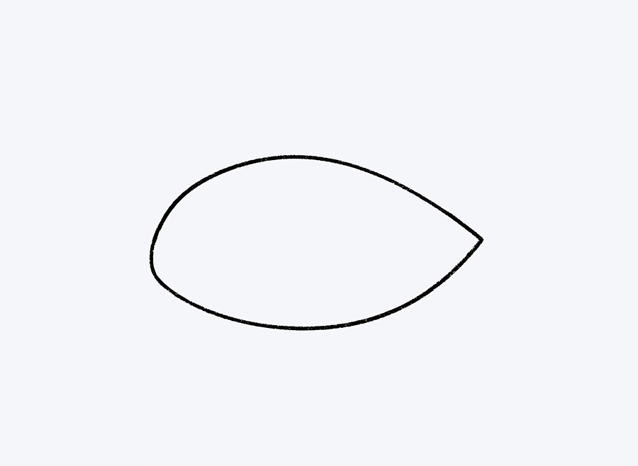Para empezar, dibuja la forma básica del cuerpo. Imagina una gota de agua acostada; esa será la silueta principal.